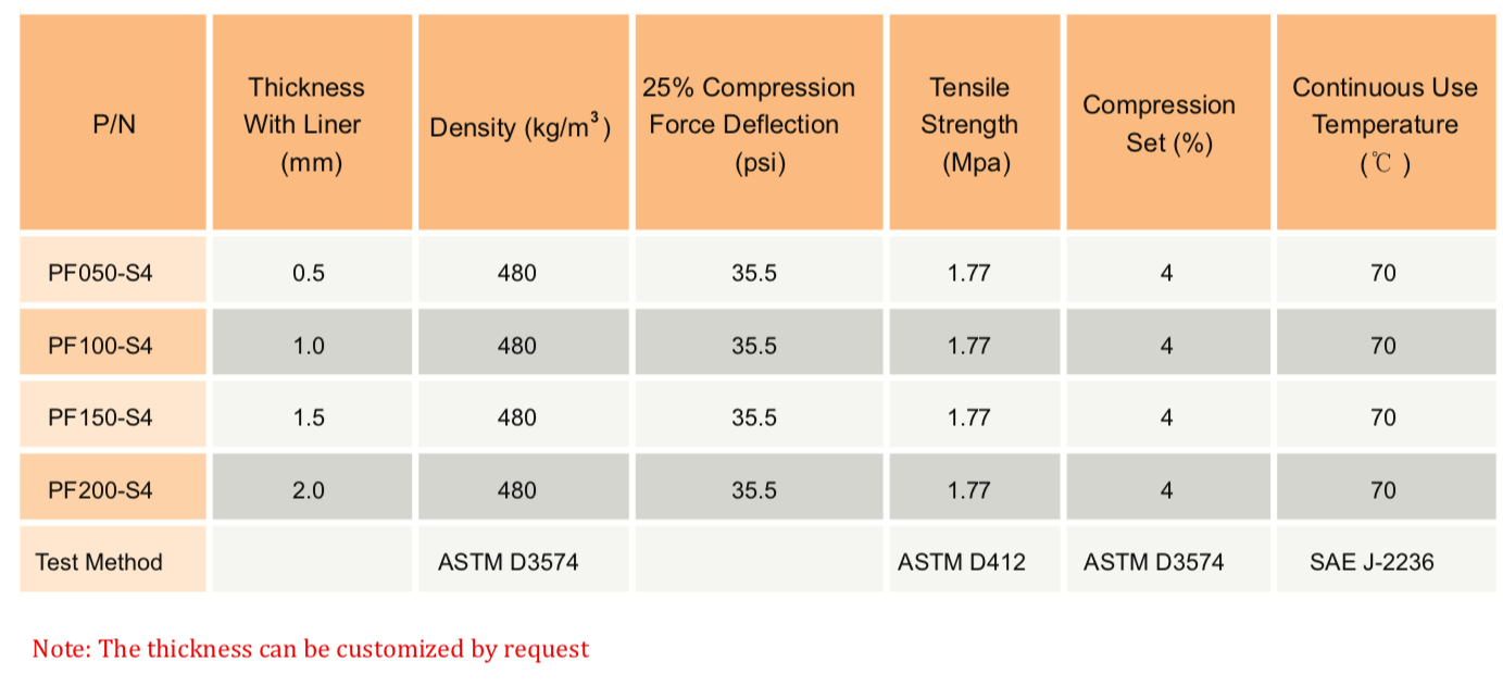 TM PF-S4 系列是一种稳固、快速回弹的泡沫,用于电子设备的缓冲、保护性密封和长期间隙填充。S4系列具有非常好的耐磨性、高密封性能和优异的冲击吸收性能,可用作脚垫。" />